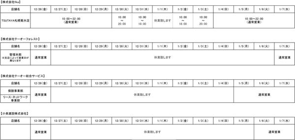 株式会社テーオーホールディングスは、12/29(月)~1/4(日)まで休業とさせていただきます。